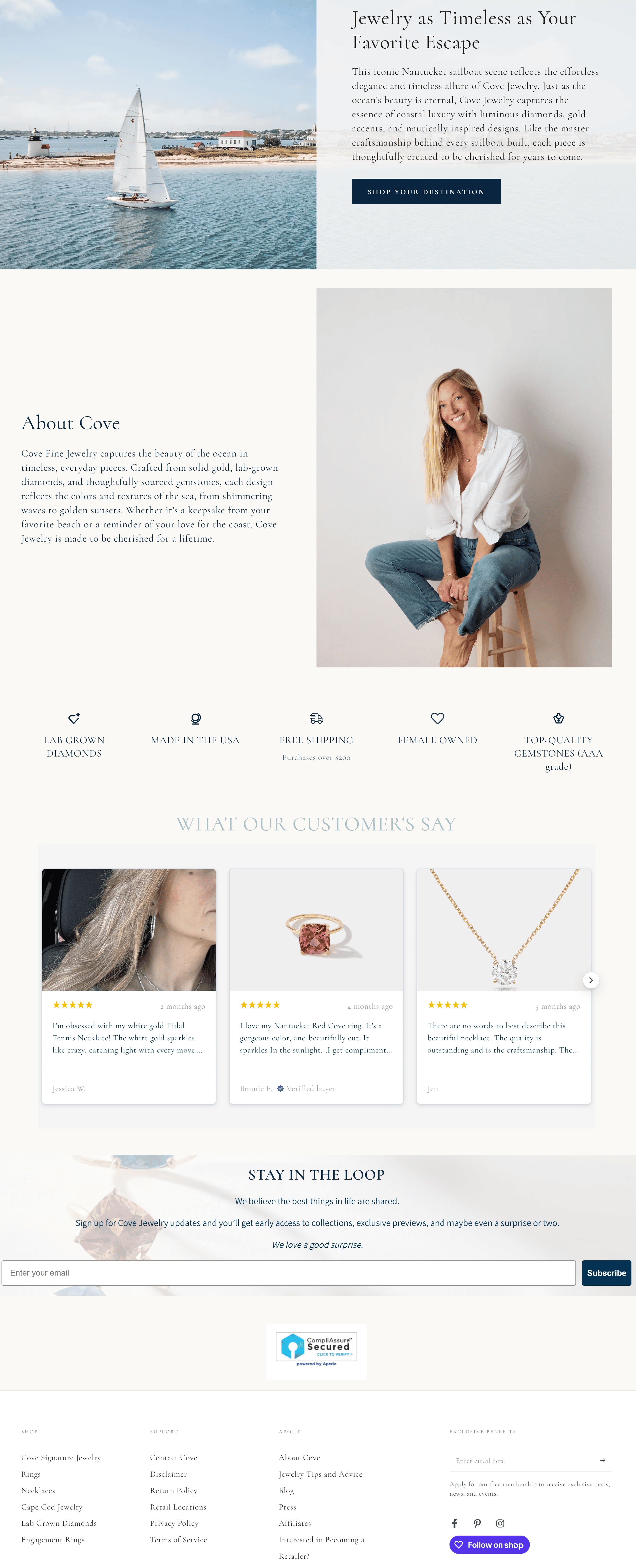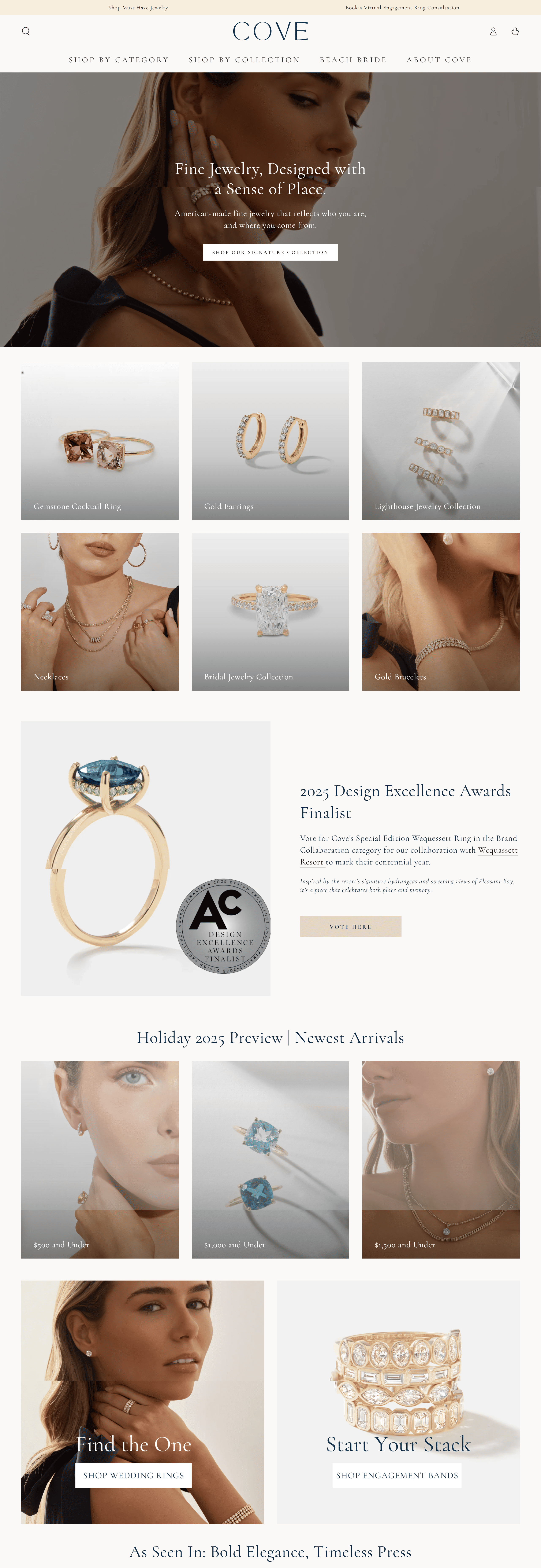 Cove Fine Jewelry is a USA-based luxury jewelry brand dedicated to crafting timeless, elegant pieces that celebrate individuality and artistry. Known for its meticulous craftsmanship and ethically sourced materials, the brand offers a curated collection of fine jewelry that blends modern design with classic sophistication. Each creation from Cove embodies beauty, precision, and purpose — making it a symbol of refined taste for those who appreciate understated luxury and enduring quality.