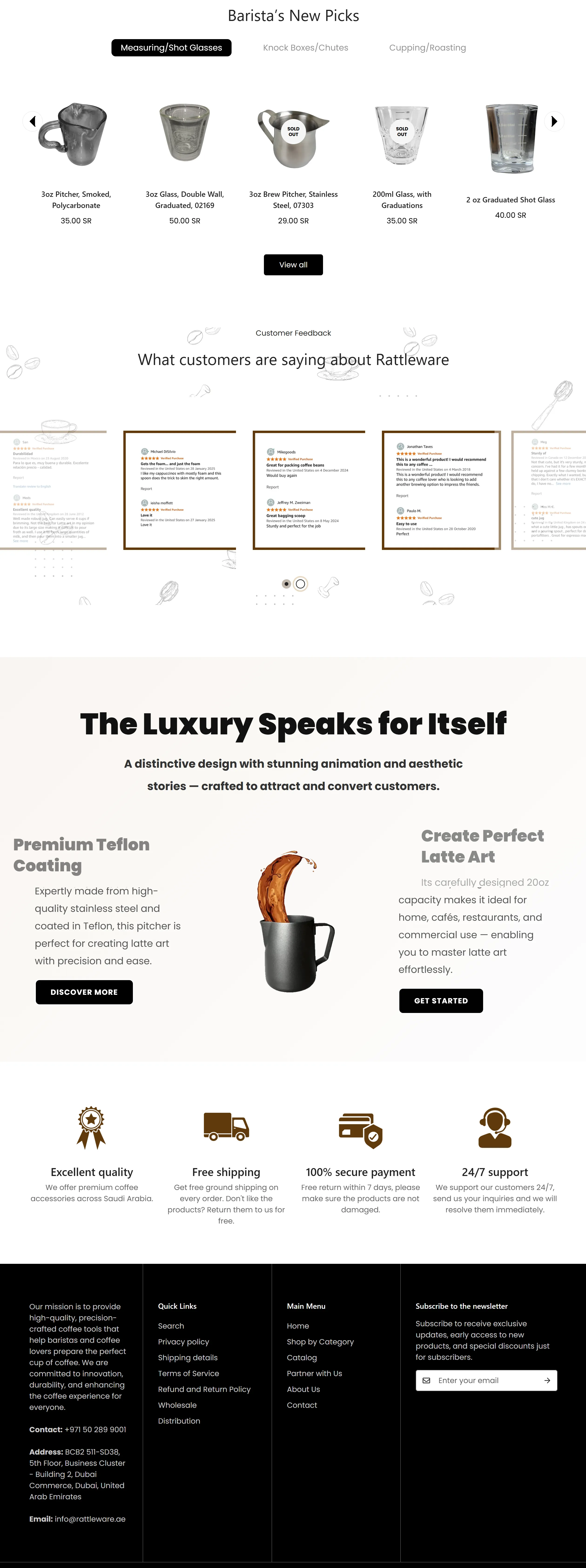 Rattleware is a UAE-based coffee equipment and accessories brand established to serve the growing specialty coffee community across the Middle East. With a focus on professional-grade tools and reliable café solutions, Rattleware provides baristas, roasters, and coffee shops with premium products designed for precision and durability. The brand’s commitment to quality craftsmanship and consistency has made it a trusted name in the region’s coffee industry, catering to both small artisan cafés and large-scale commercial setups.