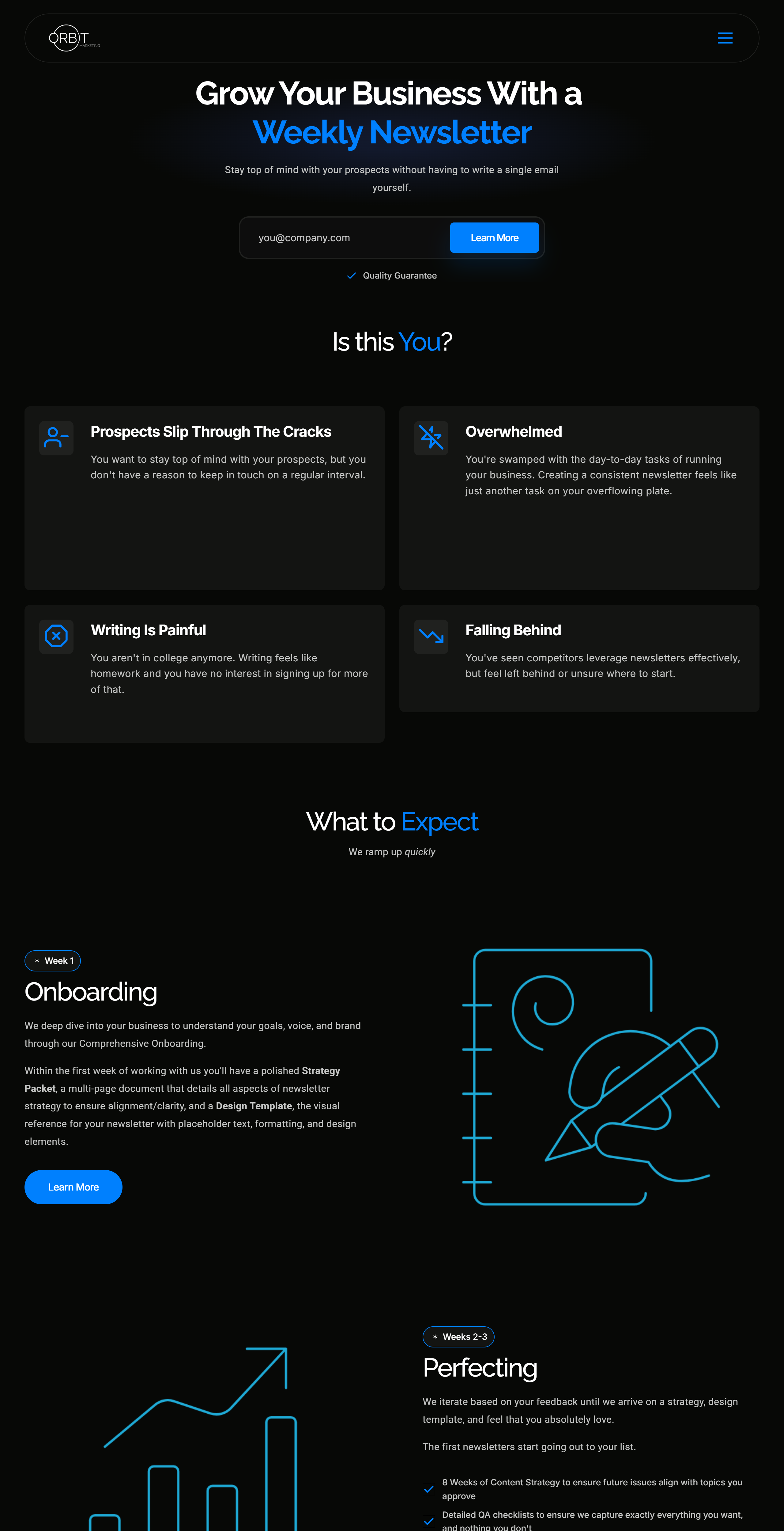 Orbit Marketing is a UAE-based agency dedicated to transforming email marketing through beautifully crafted, results-driven newsletters. Built on reliability, simplicity, and value, orbit marketing help brands connect meaningfully with their audiences through professional, high-quality content. its streamlined, plug-and-play approach ensures measurable results and lasting partnerships that make newsletter marketing effortless and impactful